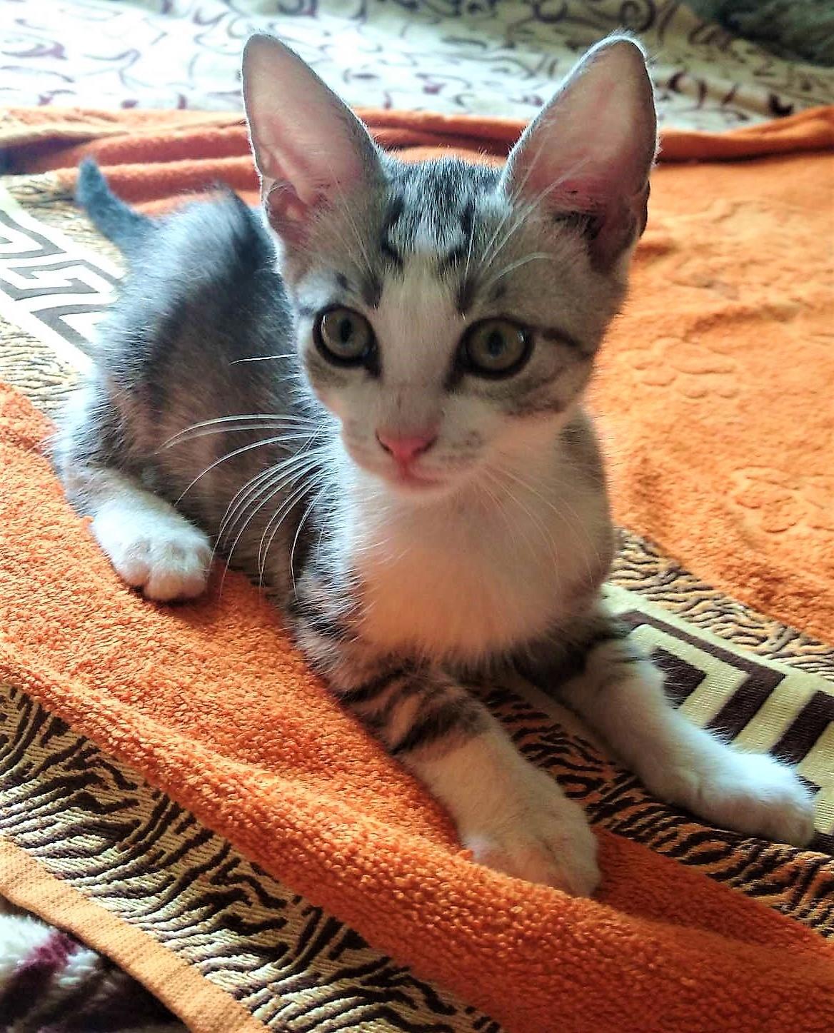 Он всем отличается от длинноногого эстетичного брата - приземистый, широколобый, на спине у него чёрное сердечко, а лицом он мил, однако, имеет престранную привычку. При всякой возможности он заваливает на пол своего серого брата, находит у того крохотный сосок и сосёт, релаксирует так, что ли. При чём Пуговка удивительно навязчив и всё брюхо у Нильса постоянно рассосано. А коты уже здоровые и выглядит это странно.
