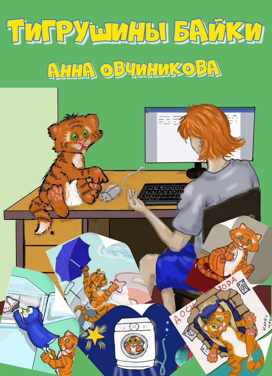 Автор: Анна ОвчинниковаИзваяла новую обложку к "Тигрушиным байкам". Взяла за основу рисунки Катерины Терешкевич и прилепила надпись. Покритикуйте, пожалуйста, потому что сложно ваять такие штуки со зрением немногим лучше, чем у крота. Надпись смотрится? Ровная?