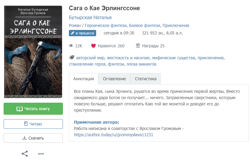 Уже вышел весь первый том и ежедневно выходят главы второго тома Саги о Кае Эрлингссоне! Очень рекомендую, но, весьма вероятно, что на день-два вы лишитесь сна, пока не прочтете все конца! (осторожней): https://author.today/work/134977