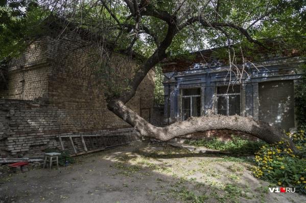 Бывшая конюшня и бывший дом прислуги, рядом с ними ещё живое "Лежачее" дерево - фото 2020 года: