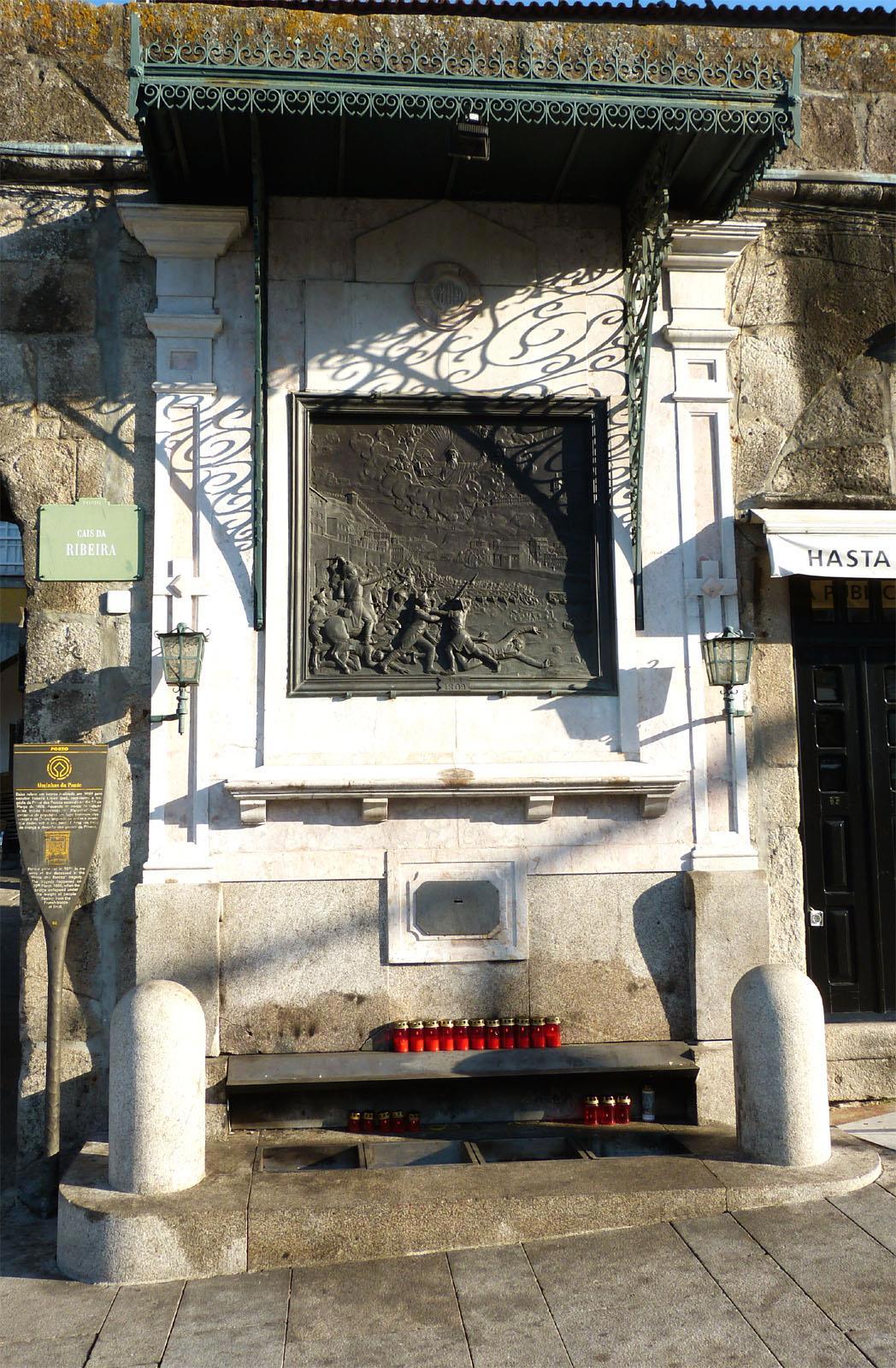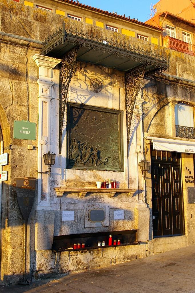 Автор: Д. В. АмурскийГуляя по славному городу Порту по набережной Дору в районе Рибейра, мы случайно заметили бронзовый барельеф, перед которым на специальных полочках стояли свечи.