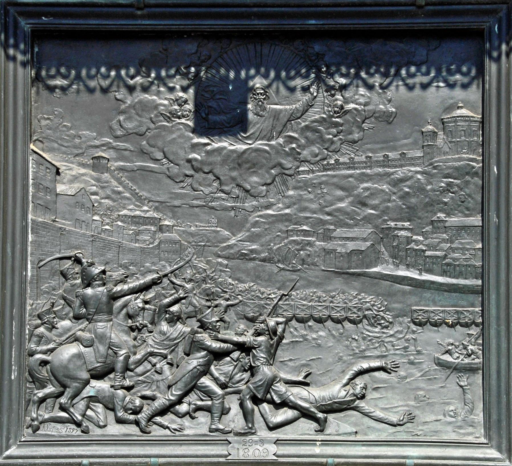 Мне стало интересно, что изображено на барельефе, и я подошёл к информационному щиту. Оказалось, что речь идёт о событиях, которые происходили более двух столетий назад.