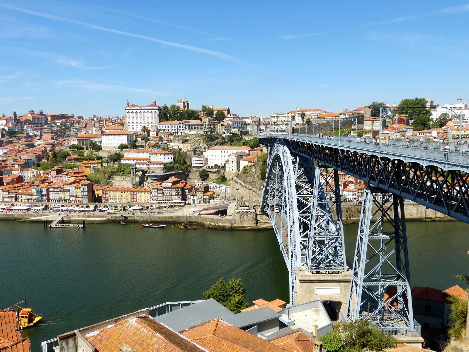 Берега реки довольно холмистые. Поэтому между Порту и Вила-Нова-де-Гайя переброшено много высоких и красивых мостов. Порту даже часто называют Cidade das Pontes (Город мостов). Можете сами оценить, как они выглядят.