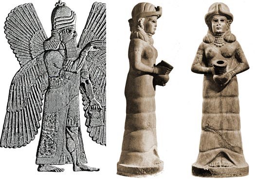 На картинках боги Шумера: Мардук и Иштар. Некоторые боги изображались в тиаре с тремя парами рогов. Для своих гигантов я остановилась на одной паре рогов.