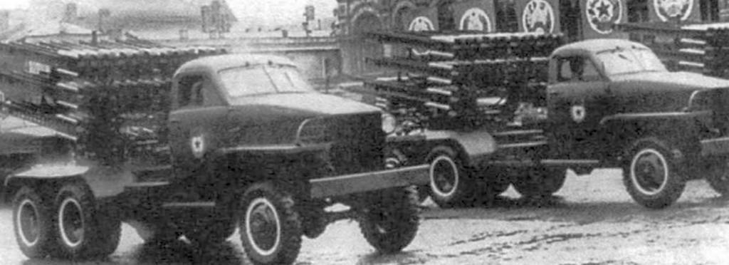 На базе более мощных «Studebaker US6» количество направляющих делали ещё больше. Это были установки БМ-8-72. Вот они на Параде Победы: