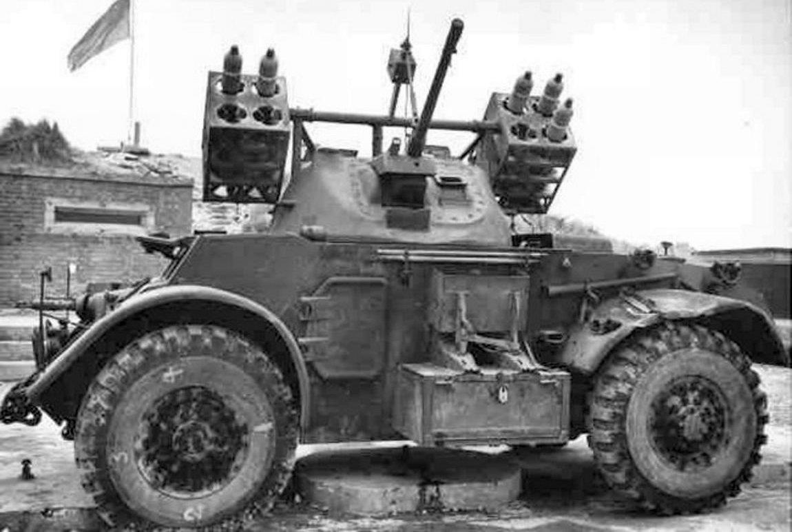 Однако были и варианты морского базирования, и мобильные сухопутные установки. Это когда пусковые устройства крепились на случайные подвижные средства. Как, например, вот такой вот вариант установки на бронемашине: