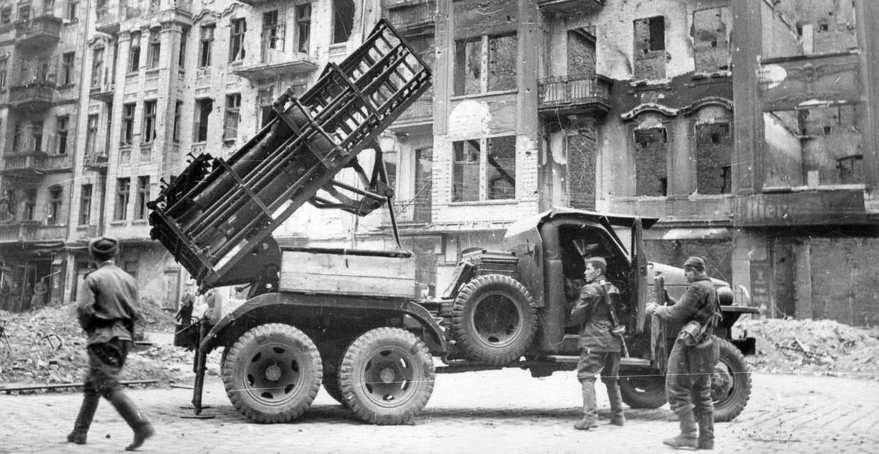 Вообще и сами установки, и снаряды для них непрерывно улучшали. Показать все их просто невозможно. Вот, например, мощная установка БМ-31-12 уже на улице Европейского города: