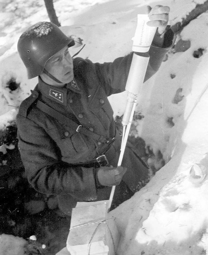 А вот здесь финский офицер заботливо утрамбовывает эту макулатуру в корпус своего летающего бидона:
