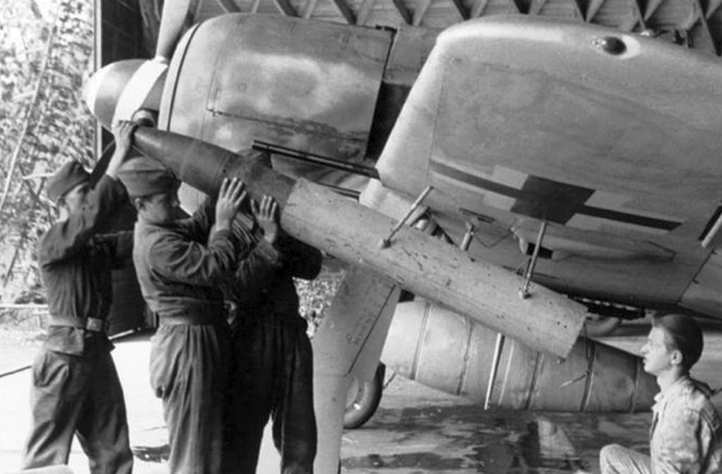 Ставили немцы пусковые установки и на самолёты. Вот на этой фотографии ракету Werfer-Granate 21 устанавливают под крыло FW 190A: