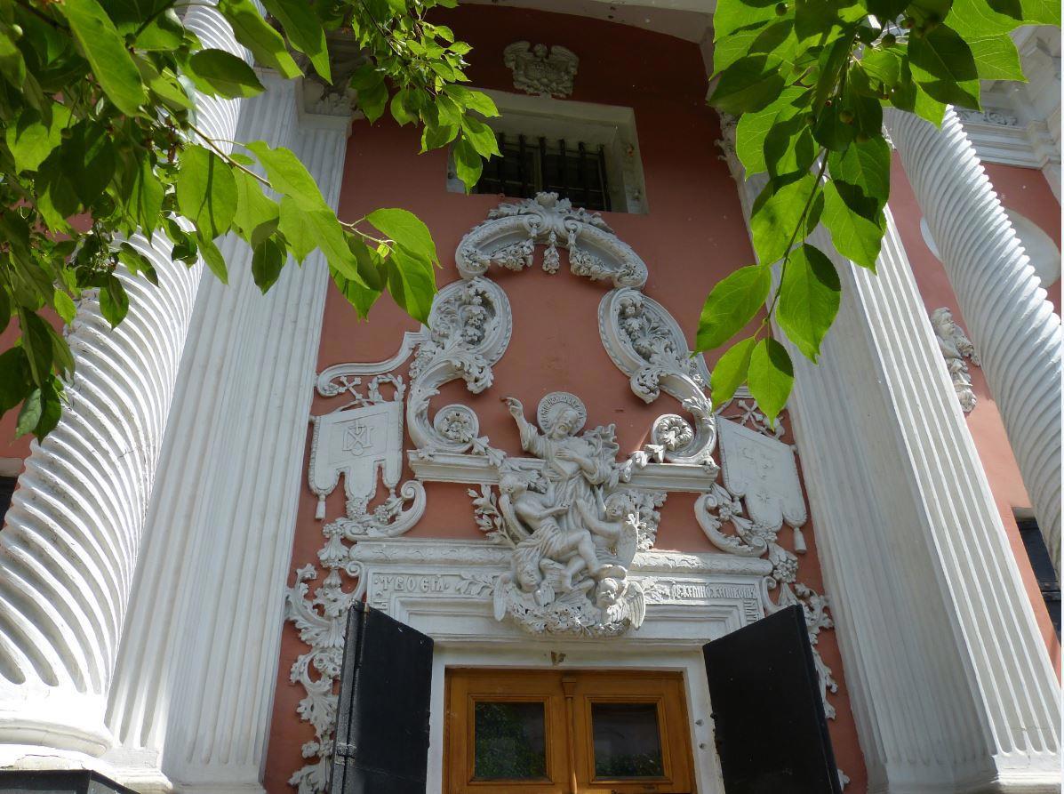 Ради такой реликвии Меншиков решил построить новую церковь вместо старой. Для работ был привлечён Иван Петрович Зарудный, с 1701 года находившийся на царской службе и фактически исполнявший обязанности главного архитектора Москвы. Зарудный нанял артель каменотёсов из Костромы и Ярославля, которая и занималась самим строительством. Очень быстро был построен храм, с одной стороны, целиком выдержанный в древнерусских традициях, с другой — уже насыщенный духом петровских нововведений. Он имел пять каменных уровней: неф, квадратную башню, три нижних восьмиугольных яруса, а также два верхних восьмиугольника, сделанных из дерева. А ещё этот храм получил богатый декор, из которого можно выделить многочисленных херувимов, а также четырёх кариатид с обнажёнными плечами внутри на хорах.