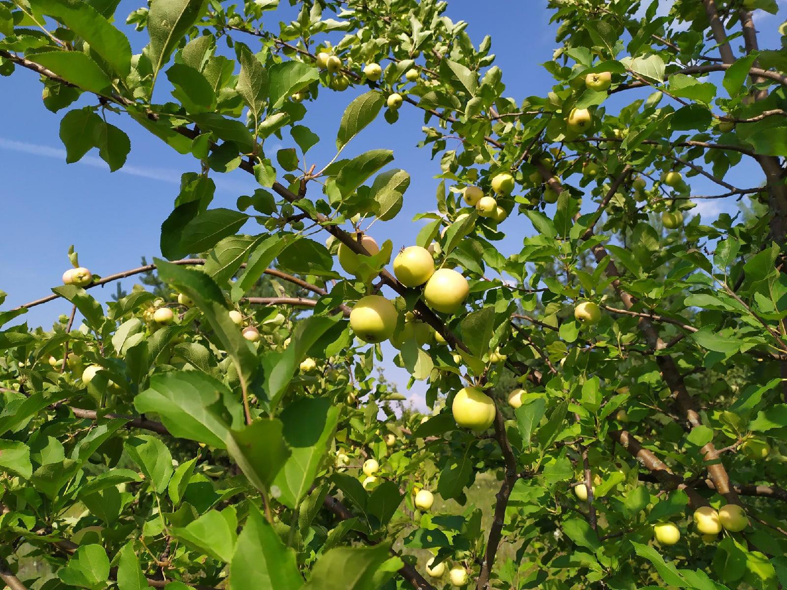 Яблочки наливаются румяной спелостью под жаркими лучами солнца.