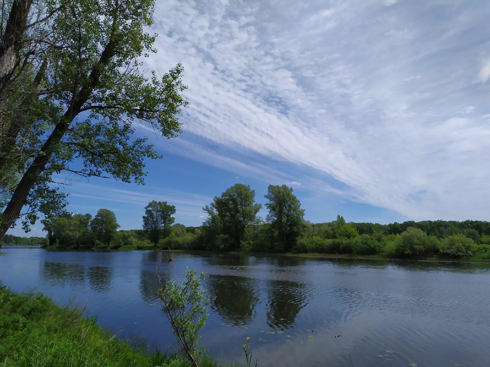 В награду - скромное обояние водной глади, лугов, сосен, тополей и бесконечного неба.