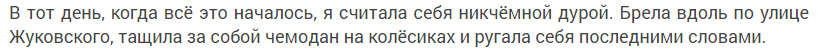 Для первой главы я выбрала отрывок, в котором происходит представление героини, когда её жизнь серьёзно "пошла не так":