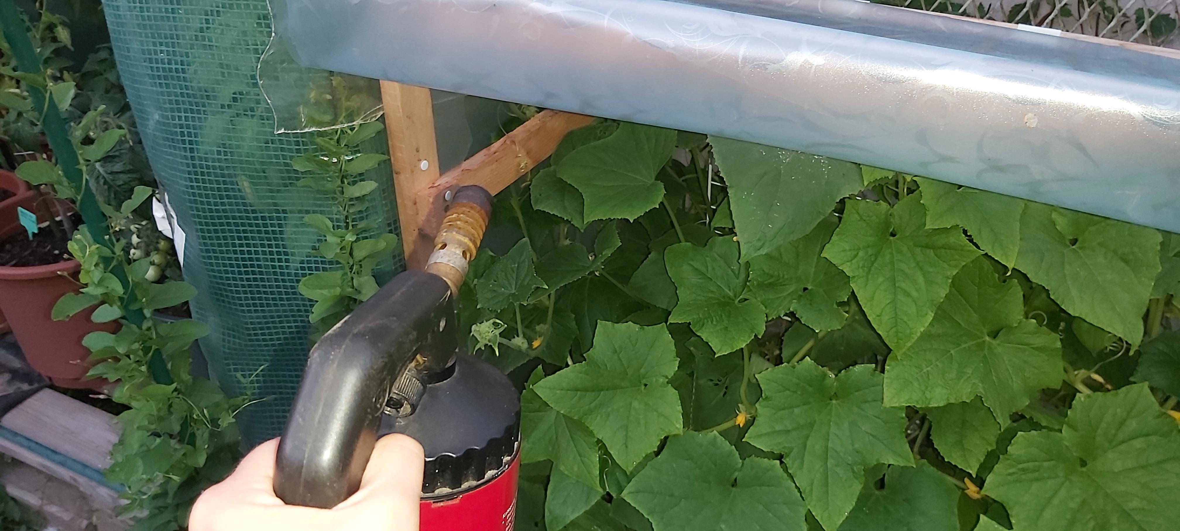 Так как надо было купить курочки, чтоб суп сварить, пошла сначала в магазин. Но перед этим обзвонила всех знакомых садоводов, и спросила, чо делать? Мне дали паяльник, (забежала к знакомой) или кто его знает, как этот герет называется. Прислали фото шпрея. Я естественно его забыла купить.