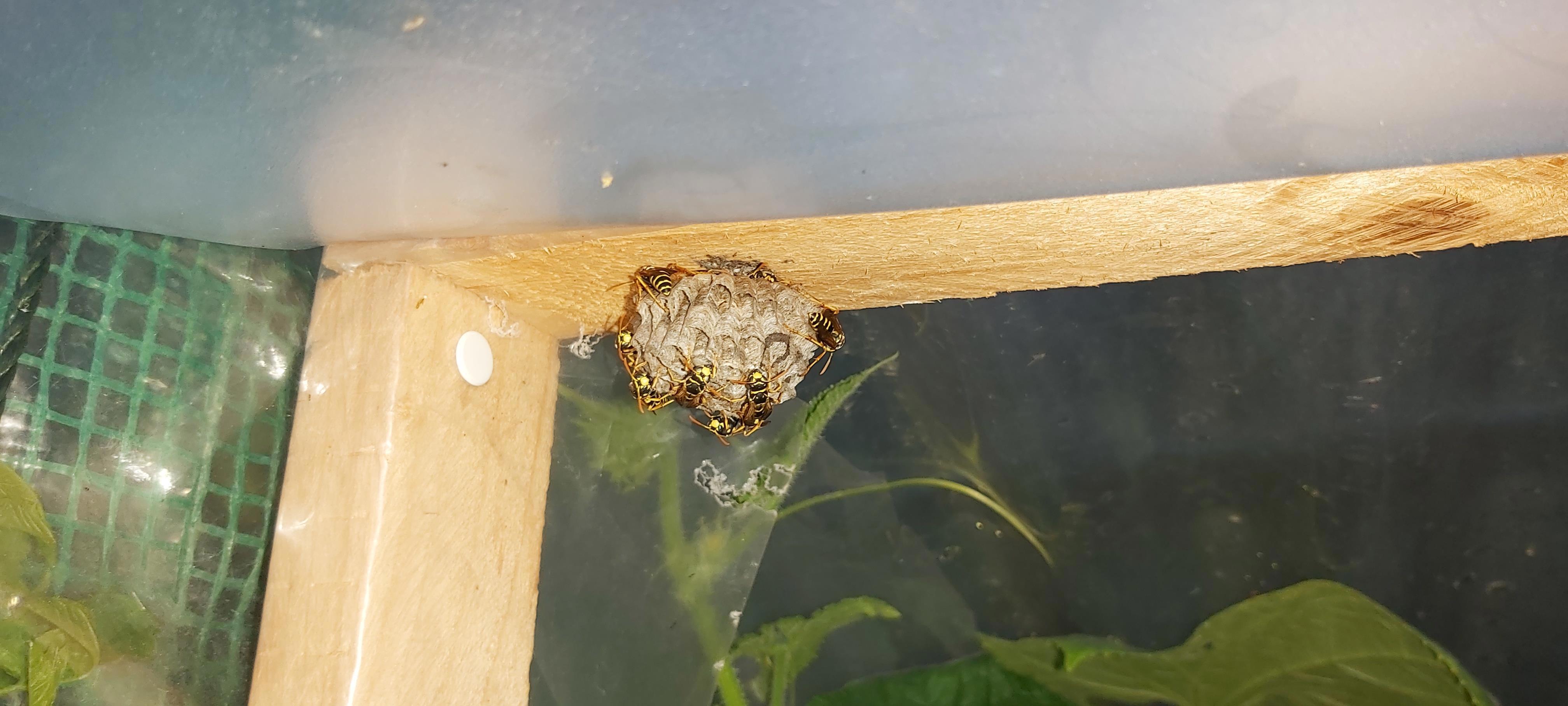 Побежала за банкой, второй вариант. Одела перчатки, и собралась гнездо смахнуть в банку, и закрыть.