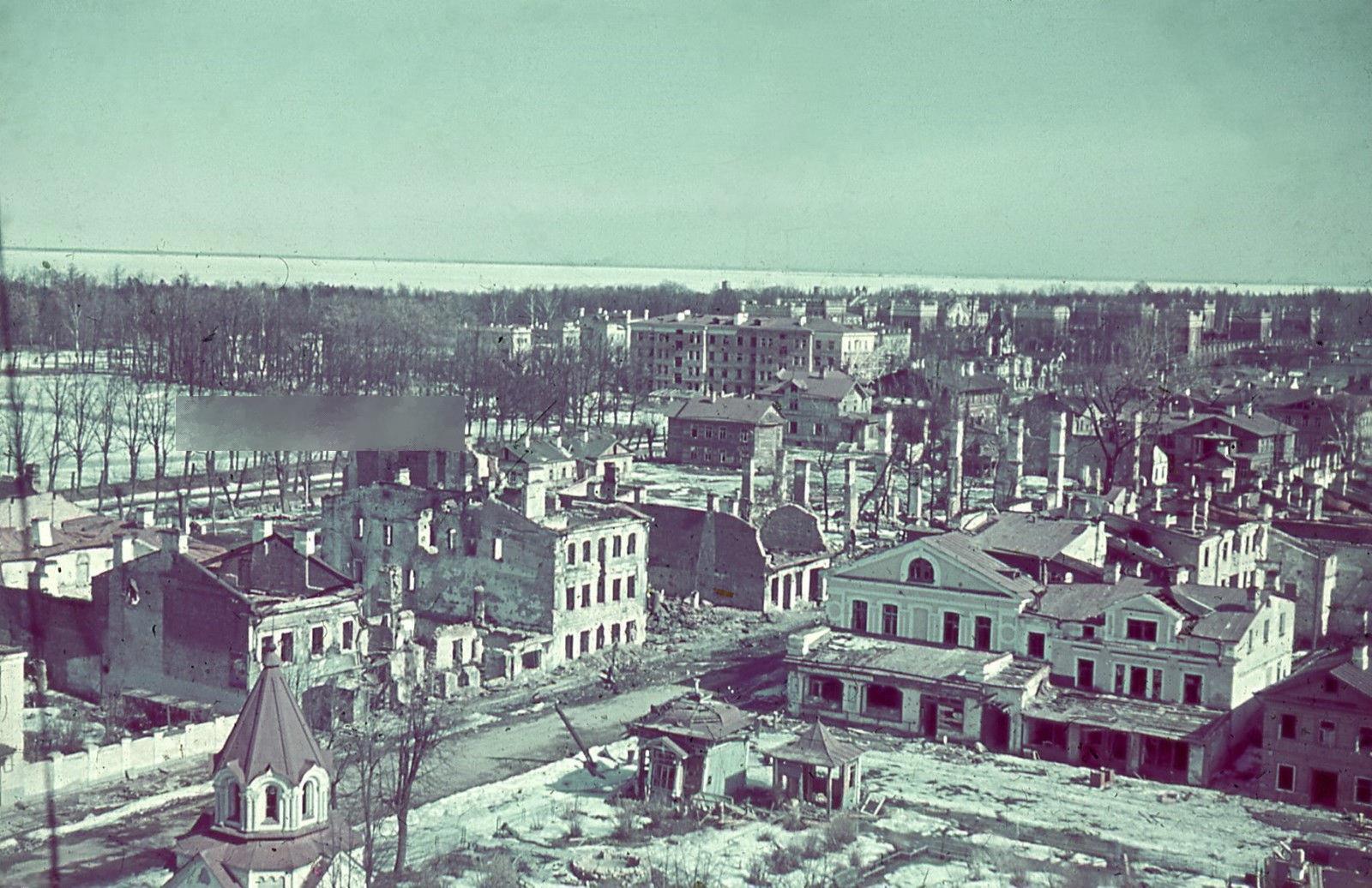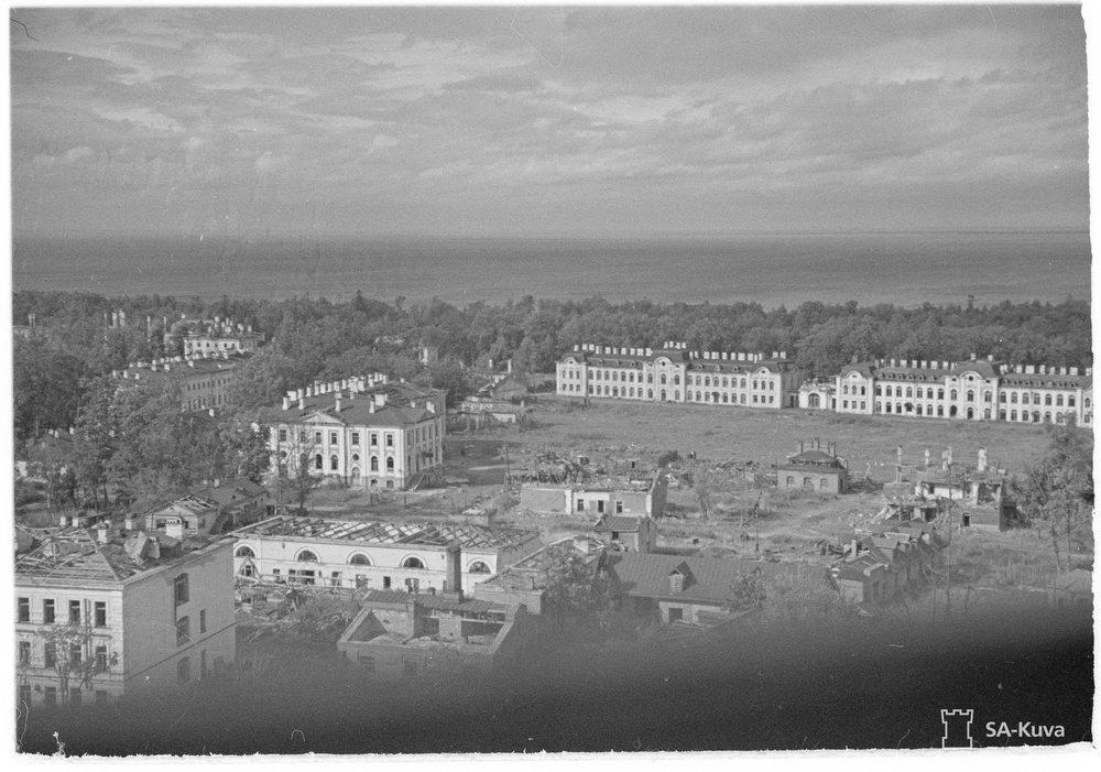 Панорама Петергофа, практически все здания разрушены и сгорели. Что любопытно - финский снимок. Боевое братство, ага.