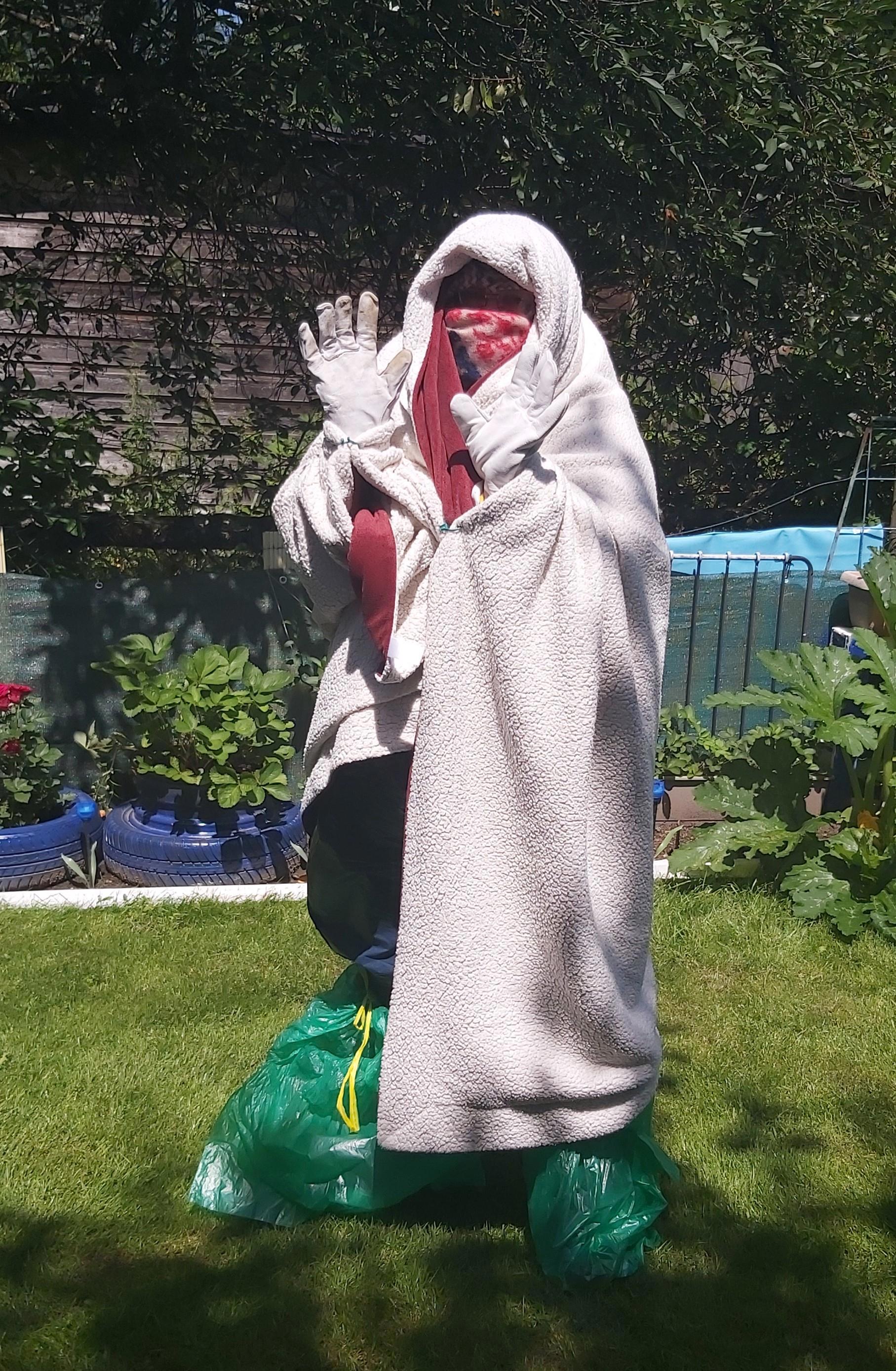 Когда она сняла гнездо, и пошла на меня, дошло, что ведро мы не подготовили. Поэтому пришлось отключить видео репортаж