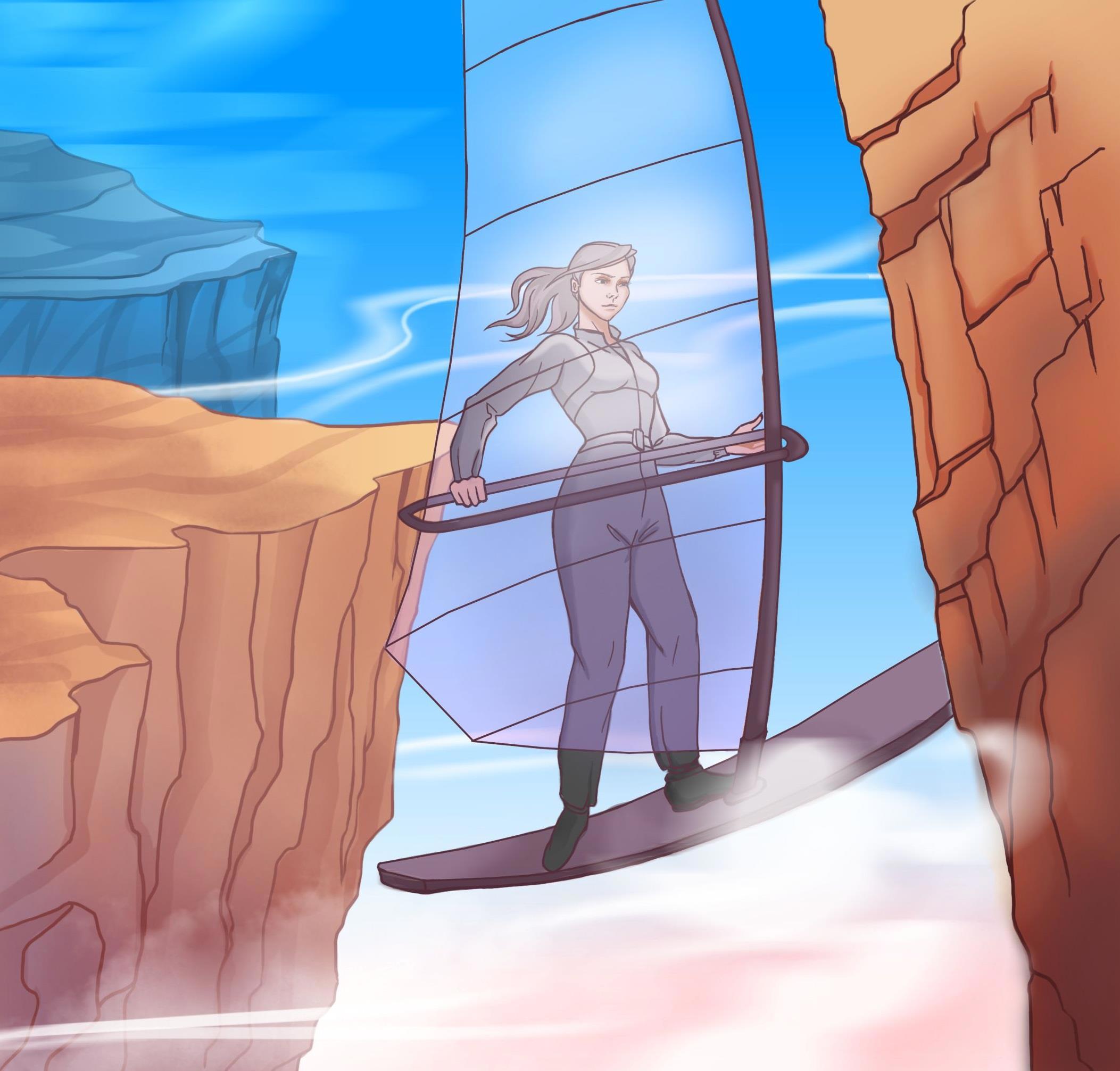 «Ах, так!» Его презрительный взгляд будто подхлестнул Дийну. Можно подумать, что, кроме как на Аррибе, больше нигде летать не умеют! Подняв парус, она слегка подтолкнула лодку вперёд...