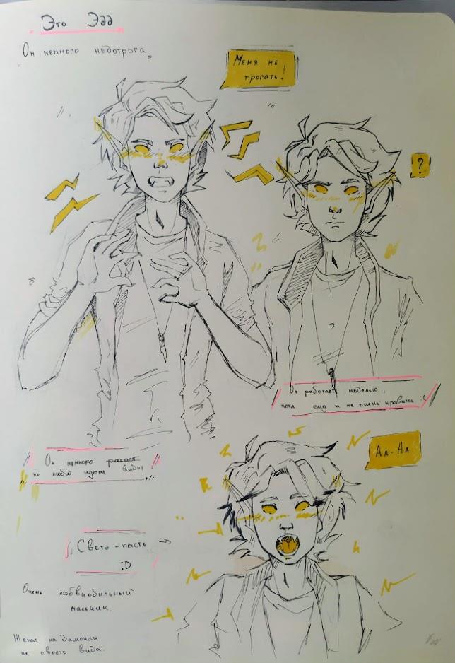 В моем альбоме, естественно, большая часть картинок составляет рефы на моих же персонажей, просто зарисовочки на полях и так далее. Возможно, если у меня когда-то появится желание, или интерес к моему профилю со стороны аудитории, возможно, я буду более подробно о них рассказывать, мир где они живут и так далее. (Я не писатель, однако постараюсь сделать что-то годное.)