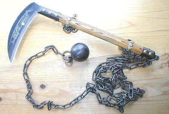Кусаригама (яп.くさりがま; 鎖鎌) — это действительно страшное оружие в умелых руках. В основном оно используется на открытой местности, т.к. в лесу или узком коридоре есть риск запутать цепь и т.д.