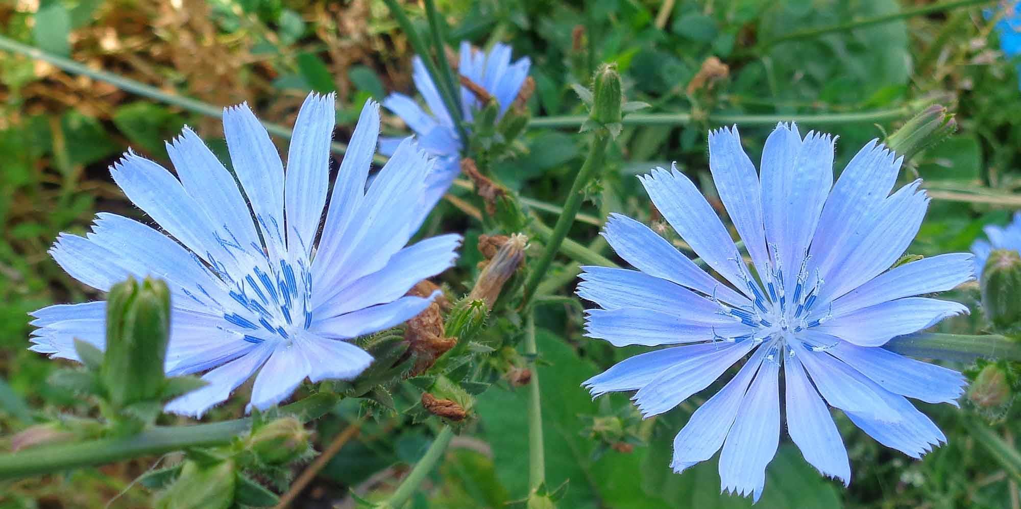 Цикорий прочно отвоевал себе место на газонах. Жара! А ему только этого и надо, он к нам завезён из жарких степей: