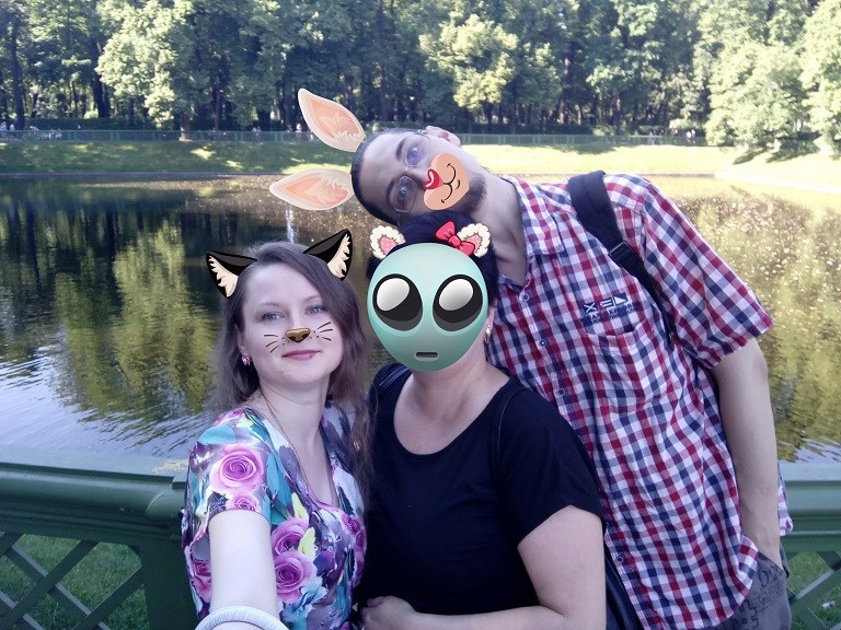 Встретились мы на Гостинке с Лавэн и Олегом. Мучили чижика-пыжика... вернее, Лавэн мучила, а мы с Олегом стояли в сторонке и не знали, где спрятаться от палящего солнца) Когда удалось оттащить нашу несравненную мадам от пернатого, пошли гулять по парку.