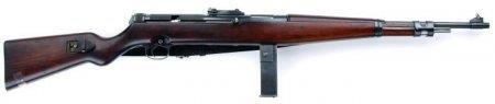 Хуго Шмайссер не устоял перед соблазном выжать из пистолетного патрона и своего MP-28 максимум. Он удлиняет ствол, переносит горловину магазина вниз, и самое главное, скромно и элегантно «взаимствует» у Фольмера его возвратную пружину в телескопическом кожухе. Изделие получило название MK-36. Далее опытной партии из нескольких штук этих карабинов дело не пошло. Но! Шмайссер не был бы Шмайссером, если бы на ствольной коробке не красовалась надпись «SYSTEM SCHMEISSER PATENT». Собственно патент, по видимому, касался переводчика огня. И ни слова о Фольмере!(с)