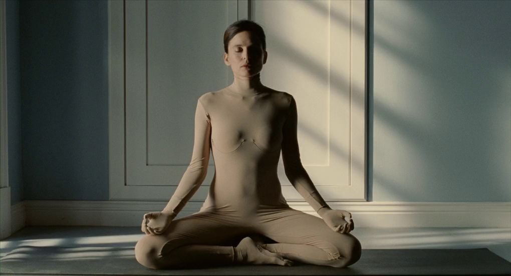 Отличный прием, который Альмодовар использовал в фильме. Сам такое люблю и обязательно сделаю что-то такое в своих рассказах. Некая вставка-ремарка. Вера смотрит по телевизору урок по йоге. И женщина тренер инструктирует. При этом, говорит, казалось бы банальные для занятия йоги вещи, но обладающие огромным смыслом в этой истории: