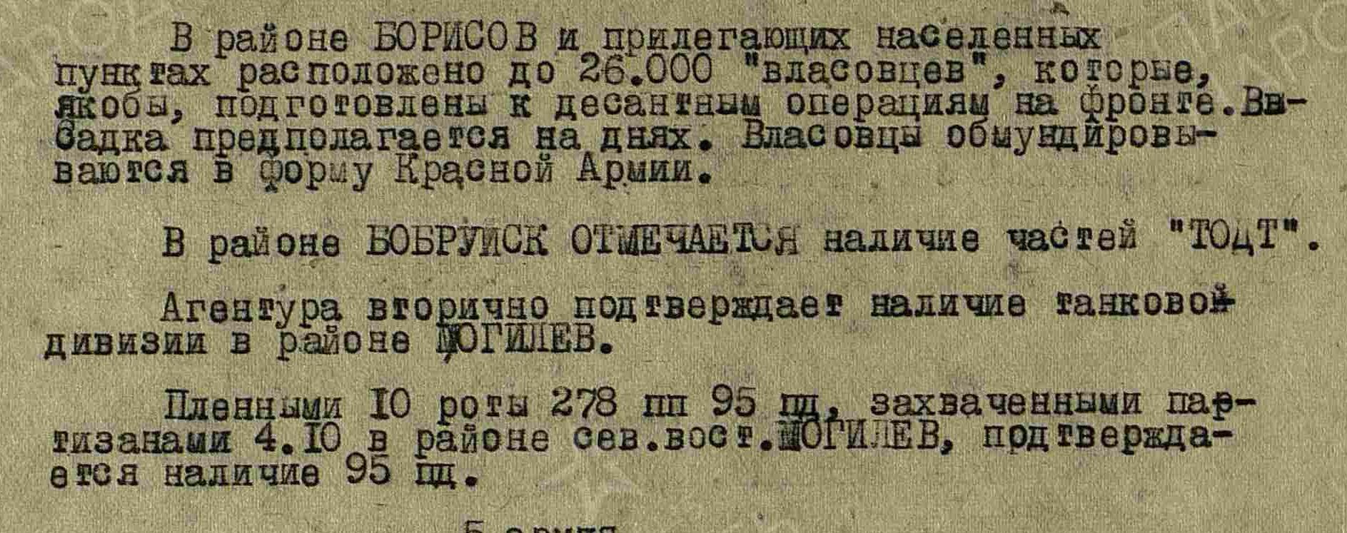 Разведотдел фронта не стремился к внедрению своей агентуры в штабы и воинские учреждения противника. Работа агентов протекала по линии наименьшего сопротивления и ограничивалась простым наблюдением и сбором слухов среди местного населения. Связь разведотдела со своими агентами, работавшими в тылу, находится в очень плохом состоянии. Многие агенты перестали присылать донесения исключительно потому, что нет питания для радиостанций. Разведывательный отдел, имея все возможности к бесперебойному снабжению агентов питанием для раций, относится к этому важному делу халатно и безответственно."(с)Доклад Комиссии ГКО тов. Сталину от 11 апреля 1944 г.