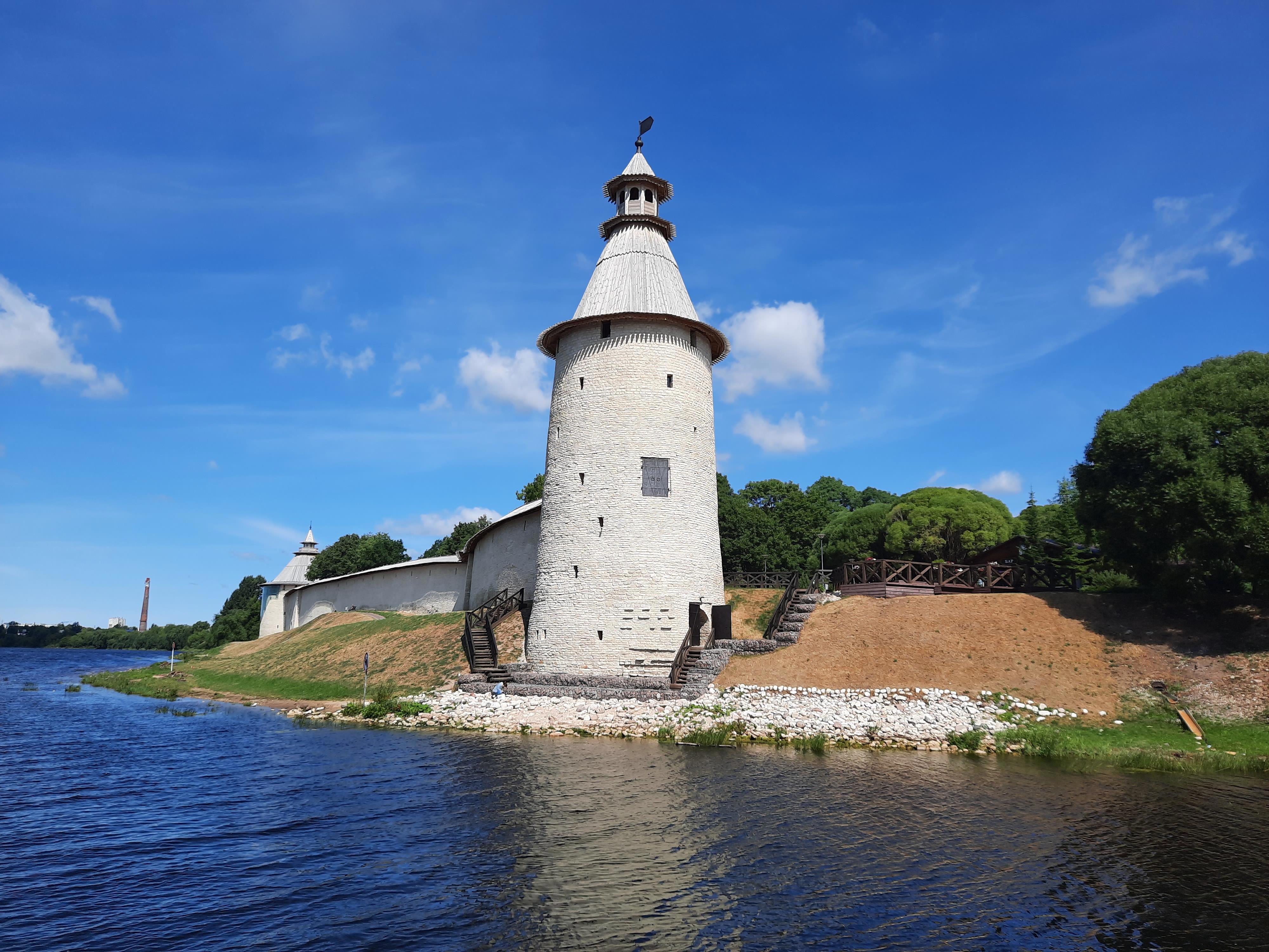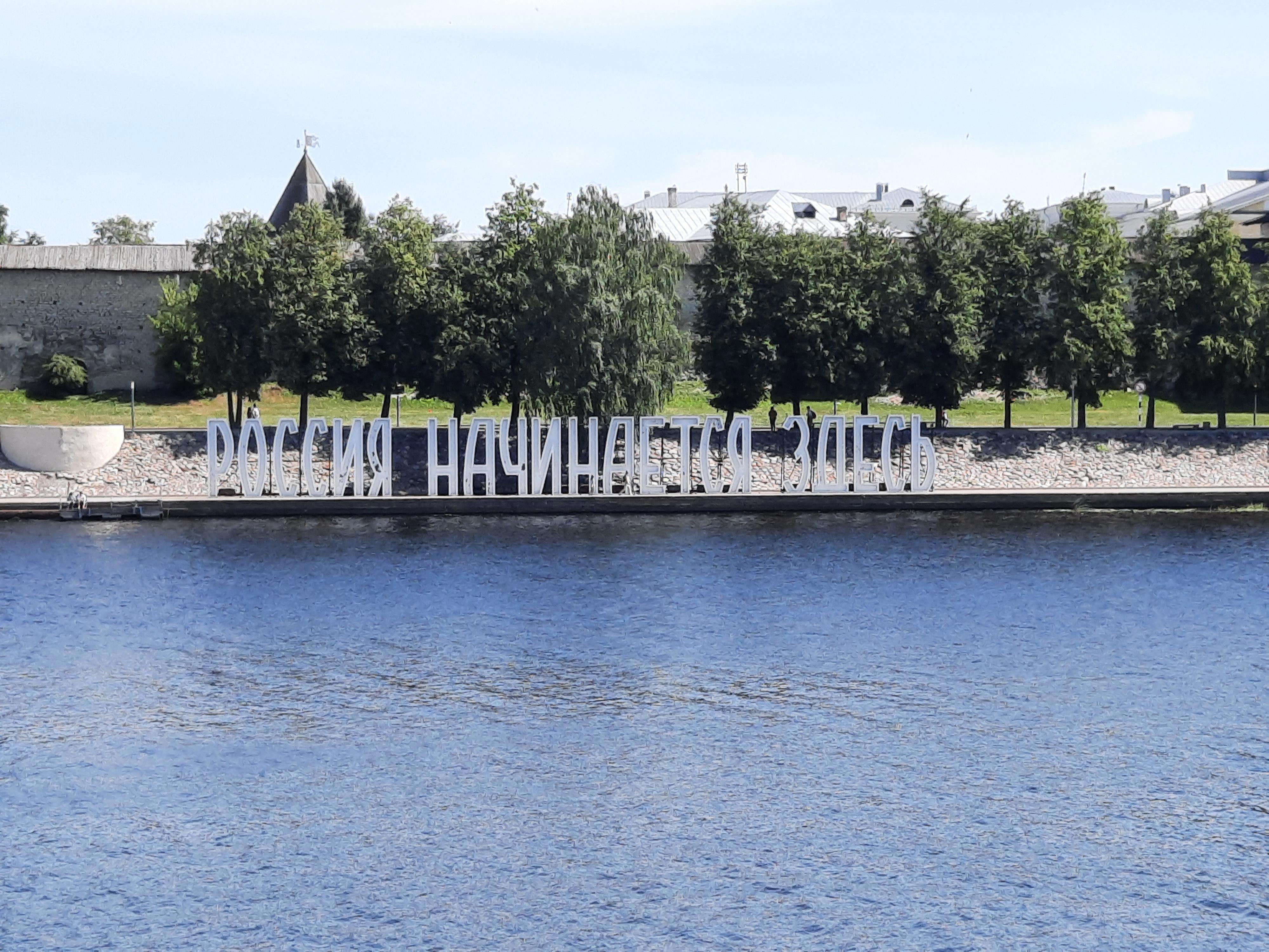 Автор: Василий Тёмный«Россия начинается здесь», гласит надпись огромными буквами у кремля Пскова. Эту надпись хорошо видно с противоположного от кремля берега реки Великой, ровно там, где по легенде стояла княгиня Ольга, что бы изречь: «Тут город будет, проектируем!».