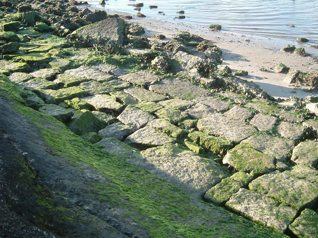У этой дамбы есть имя. Короткое и энергичное – «Рокс». Длина «Рокса» более пяти километров. И глядя на неё сверху не у одного меня напрашивается подозрение, что дамба построена как защита от прибывающей воды. Может именно такие «цели навигации» имеются в виду? А может быть это что-то построенное значительно раньше конца 19 века и бравые солдаты дамбу просто починили? Объём работ-то очень серьёзный. Я про то, что места там низменные и болотистые. То есть с камнями есть серьёзные проблемы. А на дамбе они есть и даже много, иначе её давно бы смыло. Посмотрите на фото с земли: