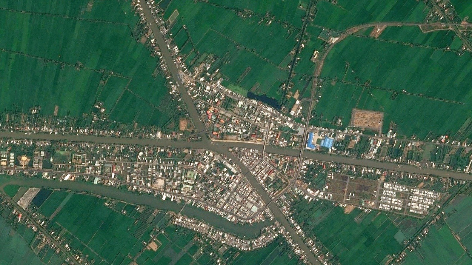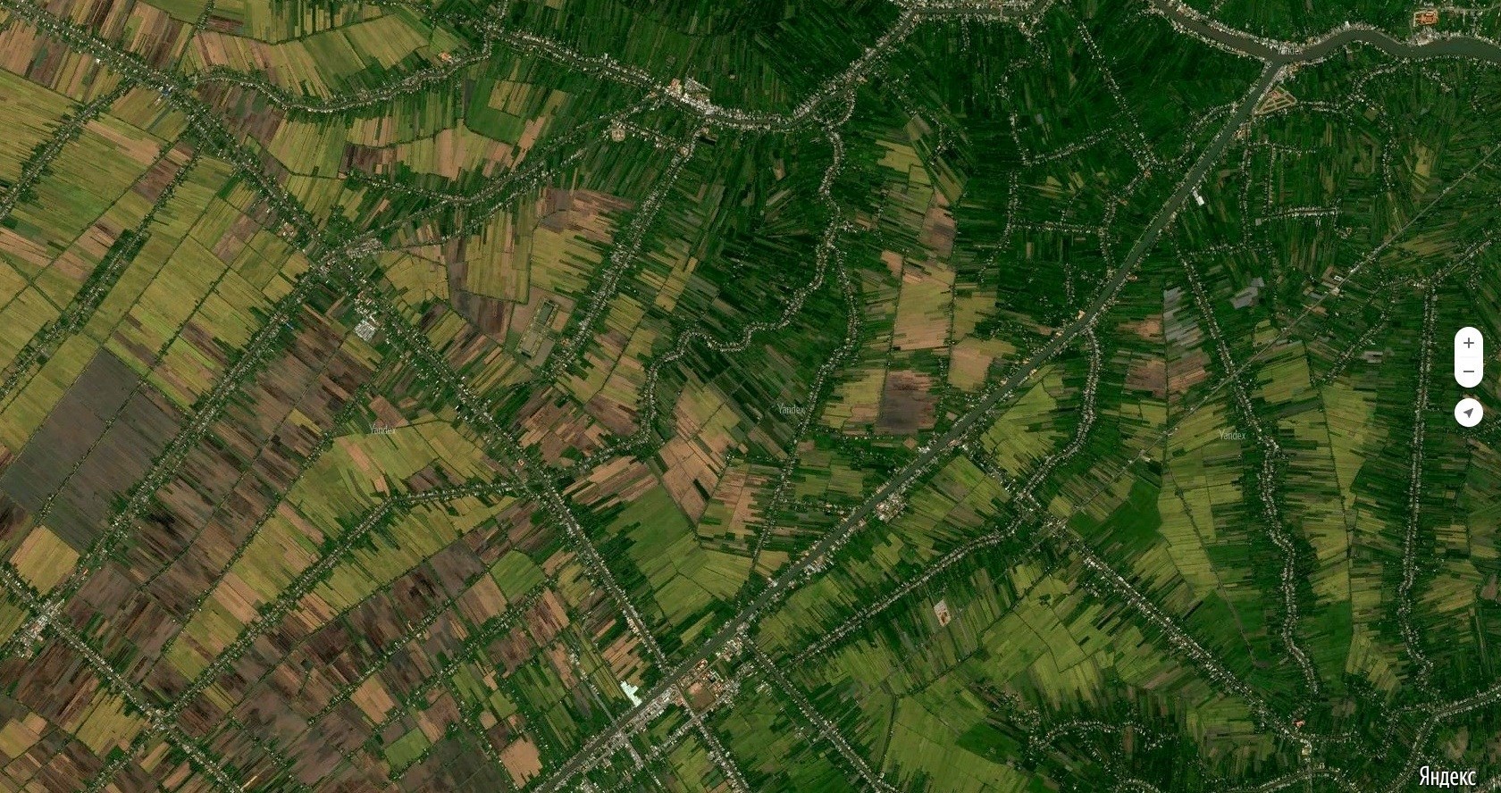 Что сказать – серьёзный водоём. Ну так ведь это же Франция, да ещё на пике развития. Давайте посмотрим, как обстояли дела с каналами, например, в совершенно «неразвитом» Вьетнаме. Говорят, что это строительство организовали короли местной династии Нгуен.  Она правила начиная с 19 и до середины 20 века. Говорят, что это было сразу задумано как система ирригационных и транспортных каналов. Меня заинтересовал термин "транспортных". Количество и размеры каналов на небольшой в общем-то территории просто шокирует. Вот просто представьте себе объём транспортных операций, для которых нужна такая сеть. Чтобы был хотя бы частично понятен объём строительства, показываю из космоса: