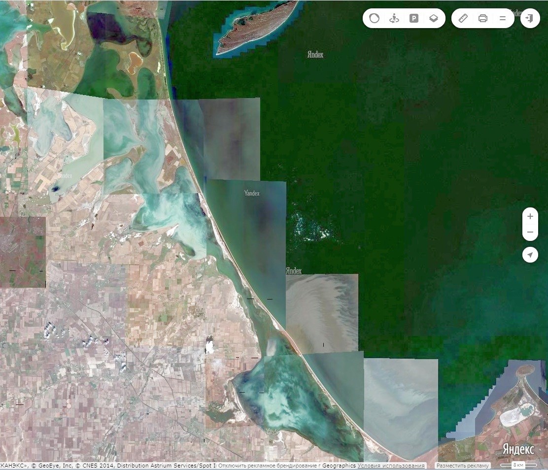 Как хотите, но я пока в чудеса не верю от слова «ваще». Особенно, когда подобных чудес много на небольшой территории... относительно нашей страны, разумеется. В том же Азовском море есть самая заметная геологических размеров аномалия, которая отлично видна из космоса, и про которую все отлично знают. Да, я про Арбатскую косу говорю. Вот она: