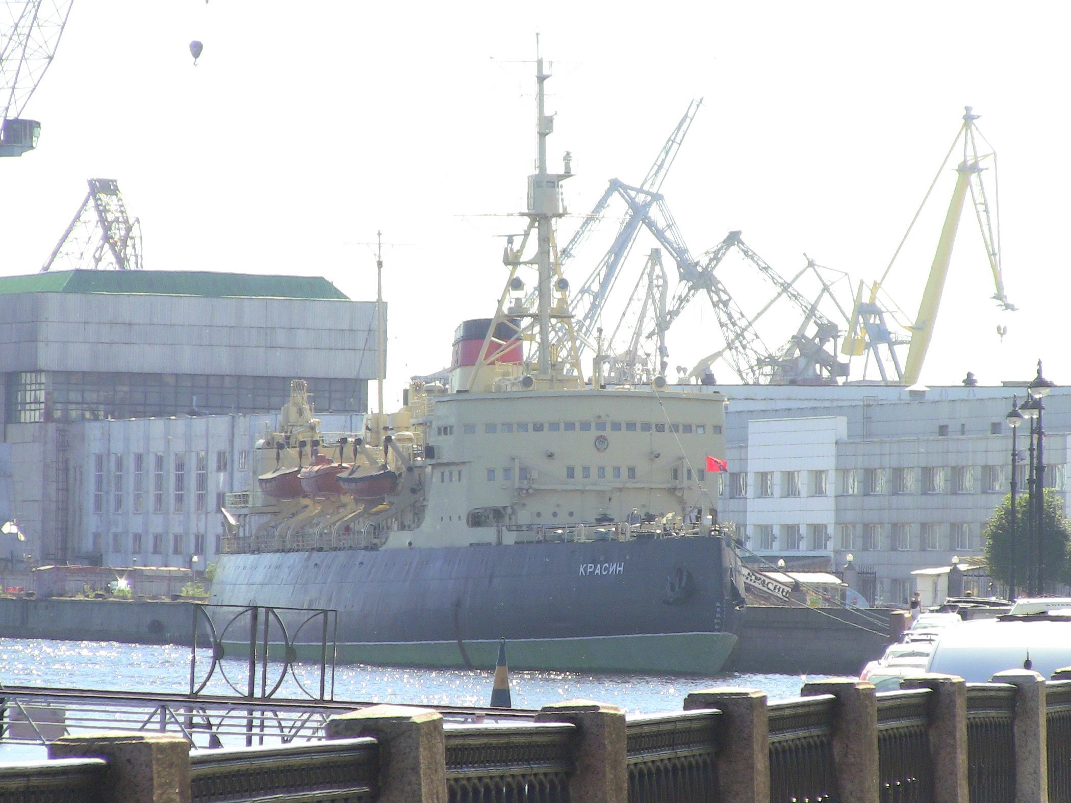 А это еще один плавучий музей, известный ледокол "Красин". Он примерно на полтора км дальше по набережной. Сделал на него наезд, чтобы взять покрупнее.