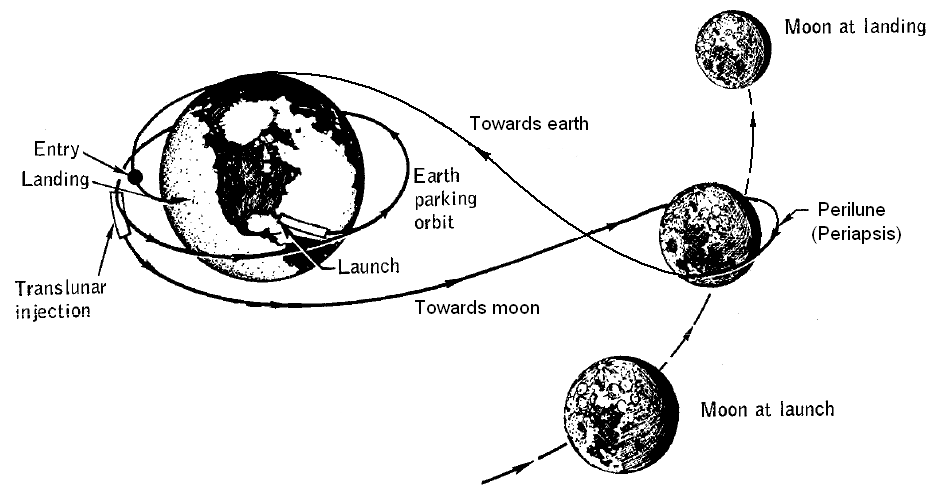 Называется она так потому, что снаряд в свободном полёте по такой траектории облетит Луну и направится обратно, к Земле, что позволит астронавтам хотя бы умереть дома. И, забегая вперёд, математики как в воду глядели - для "Аполлона-13" такое решение сыграло решающую роль.