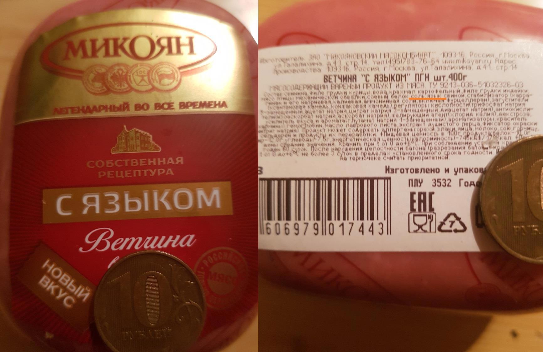 Второй продукт снова элитный. Это ветчина высшего сорта с языком - продуктом диетическим, считающимся одним из лучших мясных деликатесов.