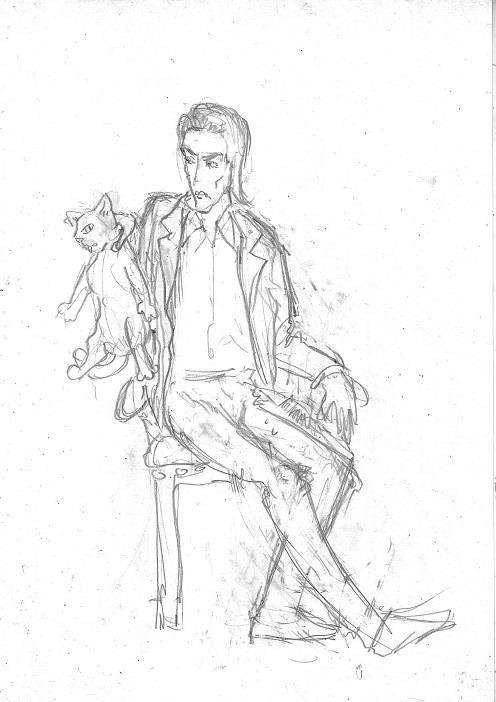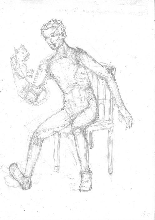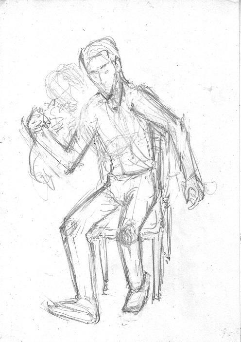 Первый набросок был "на настроение". Однако, поза была слишком заковыристая, я попробовала так сесть и поняла, что это не удобно))
