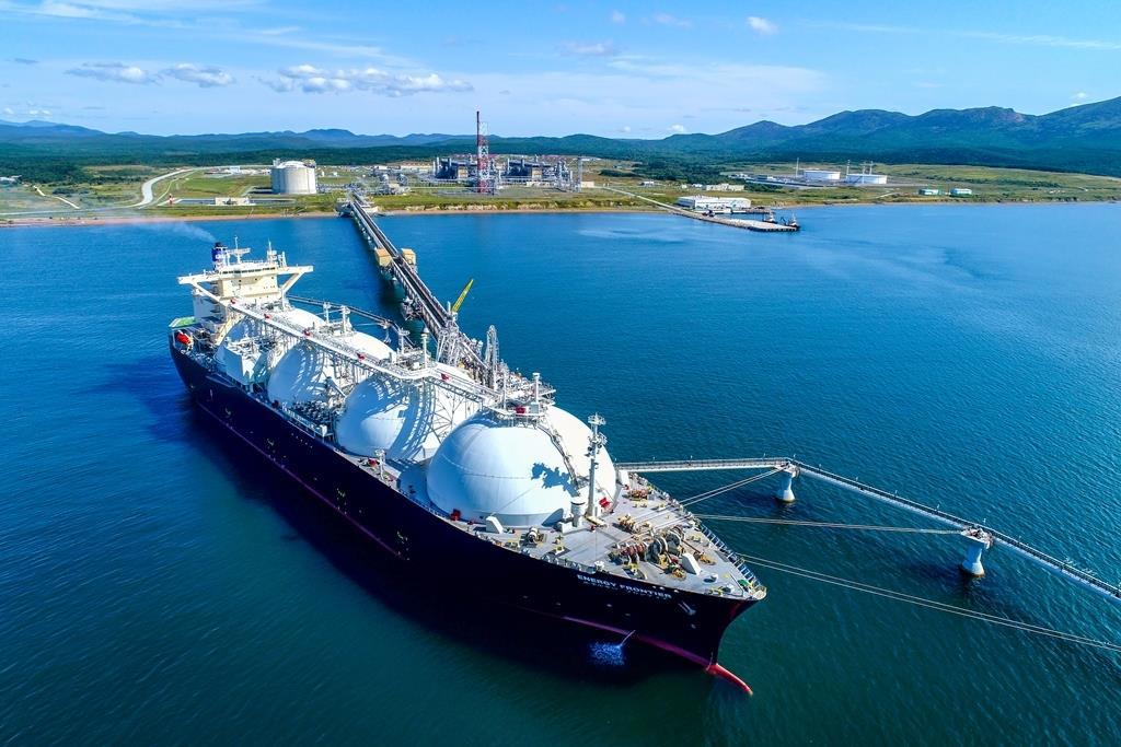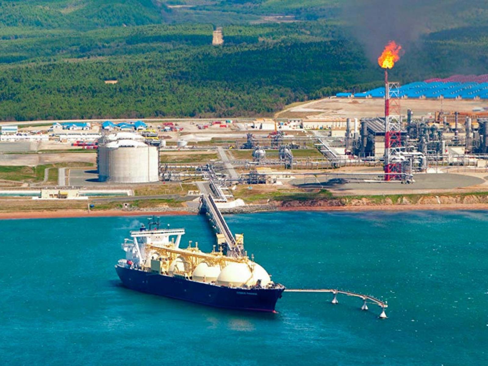 А позади завод СПГ - сжиживание природного газа. И газовый танкер для полной картины