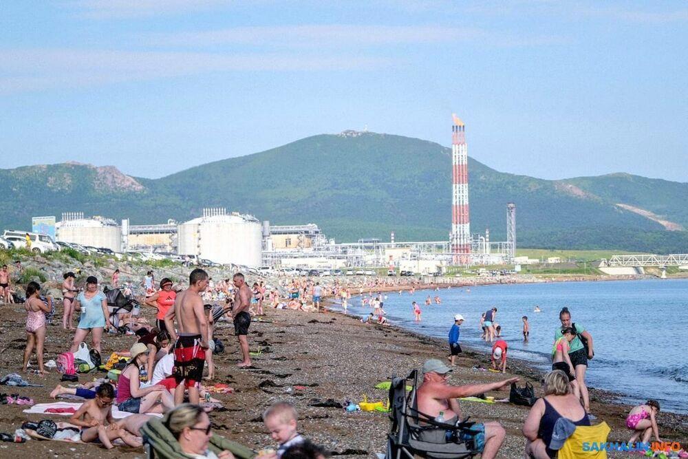 Это побережье Охотского моря и посёлок Охотское. Обычное лето, если что:) вода здесь редко прогревается хотя бы до той температуры, чтобы до костей не промерзать