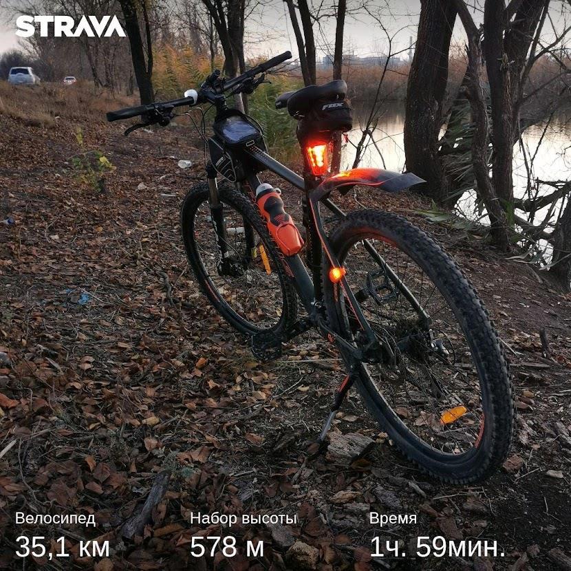 В процессе я заменил жужжащие зубастые стоковые покрышки на полусликовые Shwalbe Hurricane — и в первый же выезд обалдел от того, насколько же легче стало наваливать по асфальту. На грунтах контроля не стало сильно меньше, а средняя скорость, если верить страве, выросла на пять километров в час. А это немало. Вернул узкое спортивное сидение — и снова удивился, насколько же легче на нем вкручивать, чем на мягком “диване” а-ля “путь к простатиту”. Докупил фонари вперед и назад, оброс всевозможными сумками, креплениями для камеры и телефона… В общем, места на лоджии стало значительно меньше) И, боюсь, это далеко не конец)