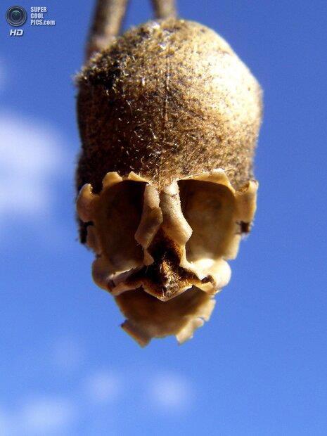 На картинку наткнулся совершенно неожиданно в интернете. Оказалось, что растение похожее на человеческий череп, называется антирриум (в народе львиный зëв), и становится таким после того, как сам цветок гибнет. Из лепестков готовят обереги, из семян делают масла для омолаживания (что-то типа того).