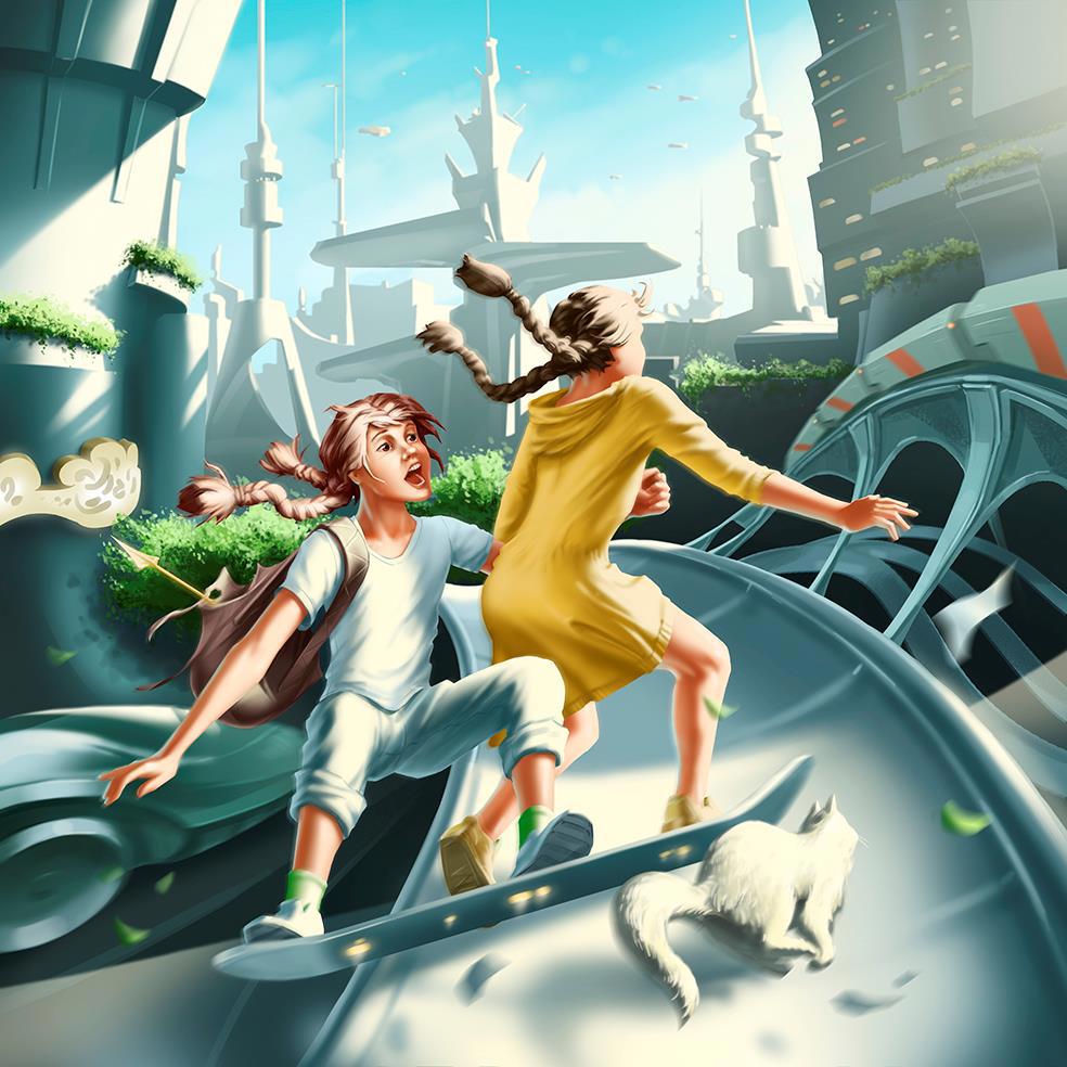 Вот такой красочный арт у меня родился, а точнее рождался в течении последних трех месяцев, потихоньку, в свободное от других заказов время. Непрерывная продолжительность создания составила около 20 часов. В нем использовано 7 рефов (в основном это движения скейтеров), а так же 79 различных слоев, включая эскизы. Сразу скажу, я не использовал 3D визуализацию. Стиль, как и у многих сейчас - что-то среднее между реализмом и анимацией.