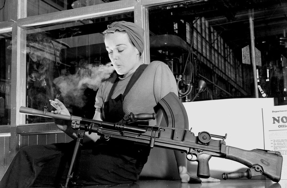 На фото та самая Вероника Фостер и "Bren Mk1" (дрянной ручной пулемёт заменивший в британских войсках знаменитый "Льюис"), Торонто, 1940 год.