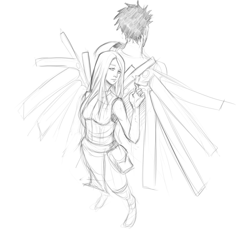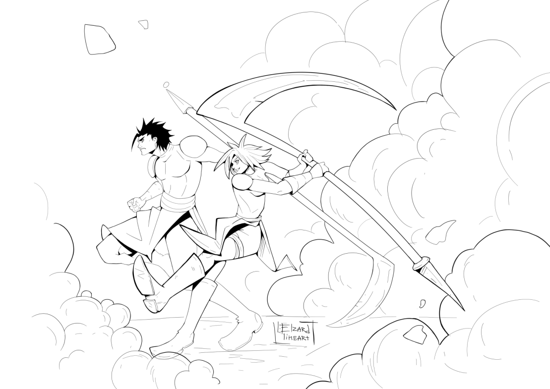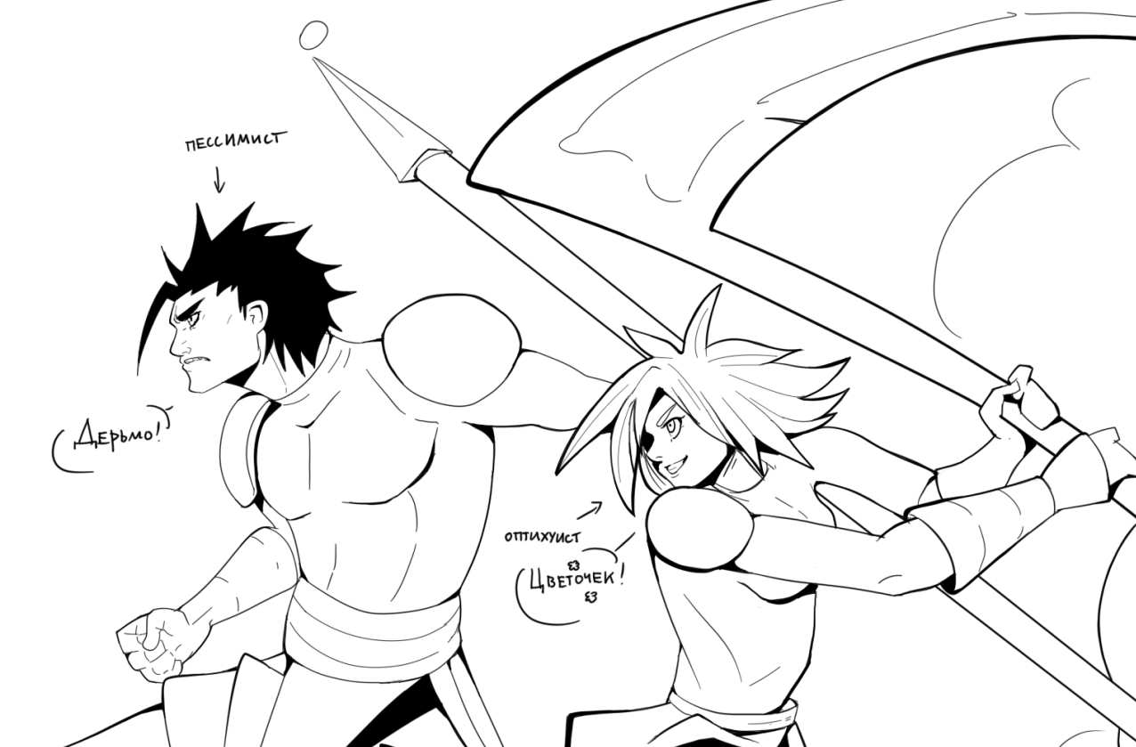 На этой неделе выжил скетч со жнецом и его ученицей из "Шёпота Тени". И превратился в лайн-раскраску))