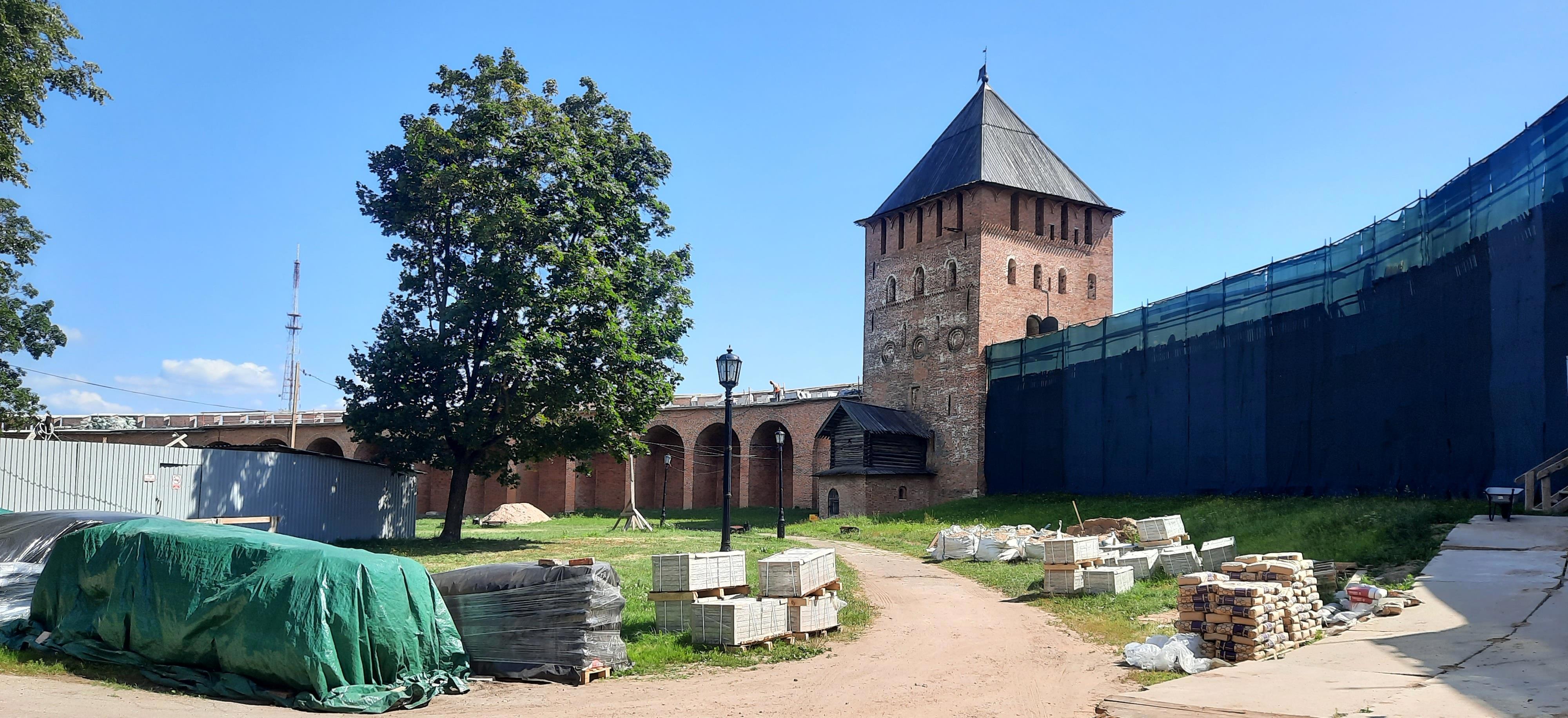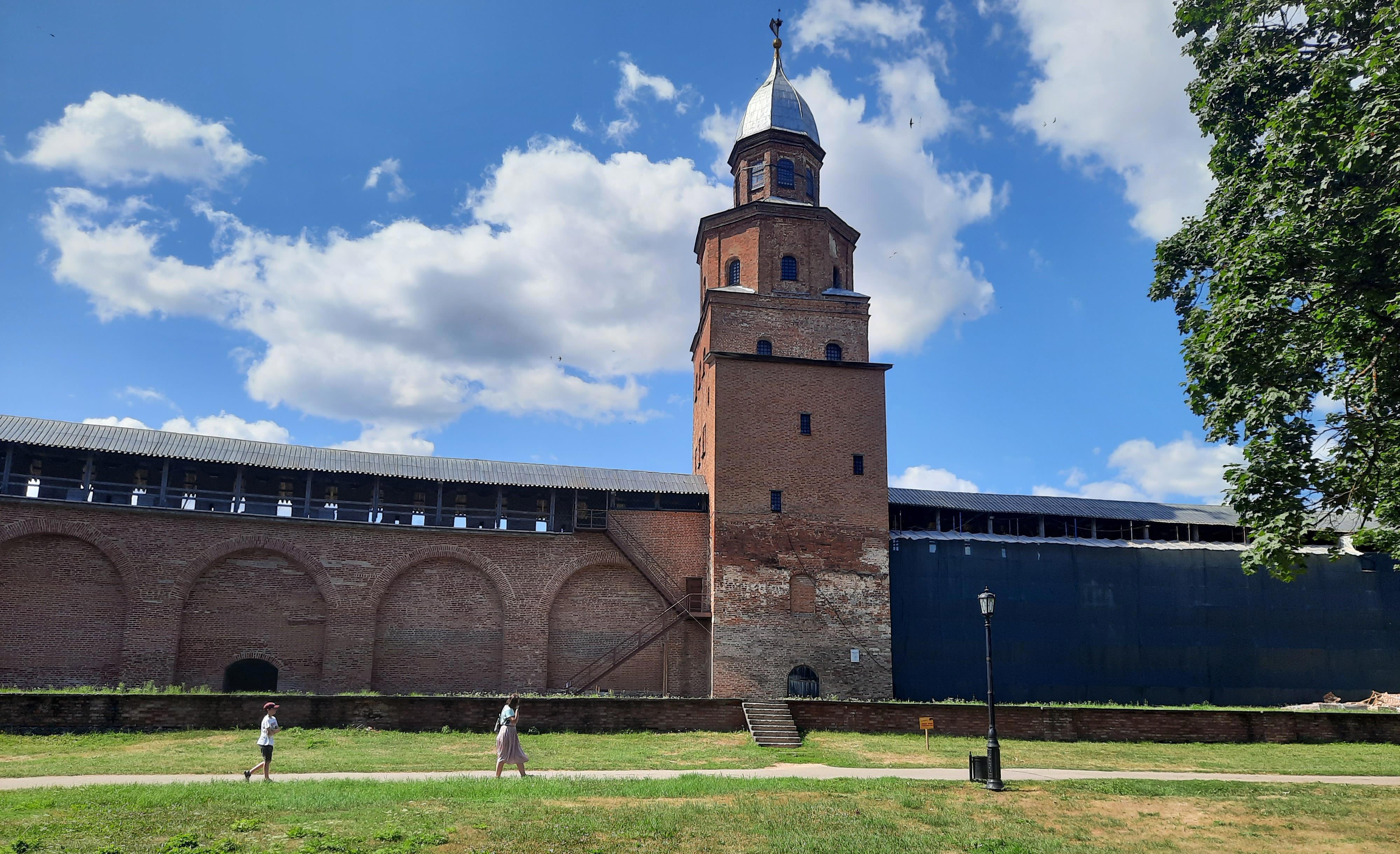 Сам кремль мне напоминает кремль в городе Коломна. Тот же стиль, только сохранился новгородский полностью, а коломенский частично был разрушен местными жителями ещё в царские времена. Посмотрел я на кремль своим незамутненным княжеским глазом и решил, что срочно нужен ремонт. Задумано, сделано.
