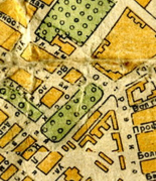 Итак, эта улица кажется очень похожей на остатки улиц Преображенского форштадта, но как она называлась раньше? На предвоенном, использовавшемся командирами Красной Армии в качестве карты местности, плане Города, она уже значится улицей Островского (Николая - автора "Как закалялась сталь", конечно), как и сейчас: