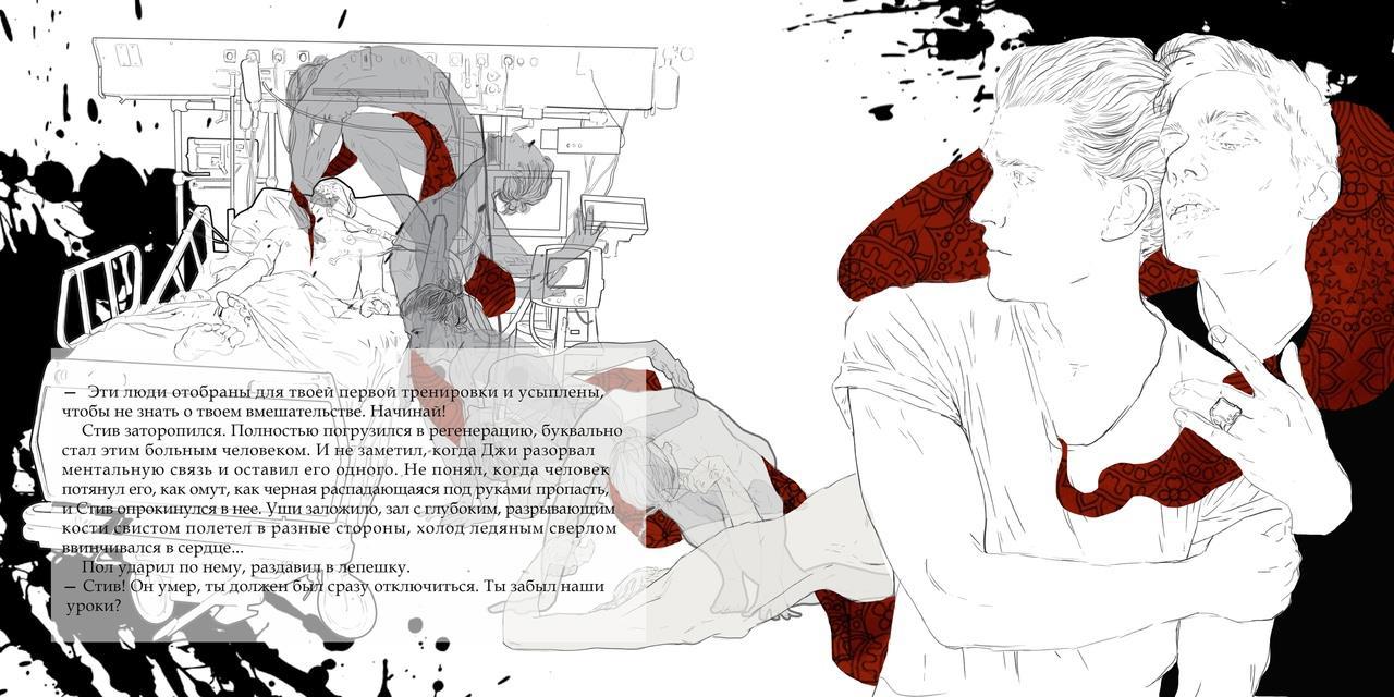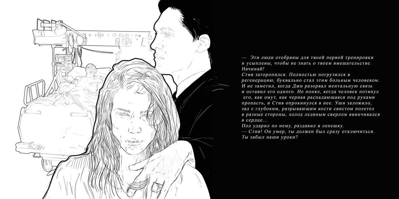 Автор: Marika StanovoiЕще один тяжёлый выбор иллюстрации к главе №4 Рождения, тренировка Крошки в виде Стива на умирающих в госпитале.