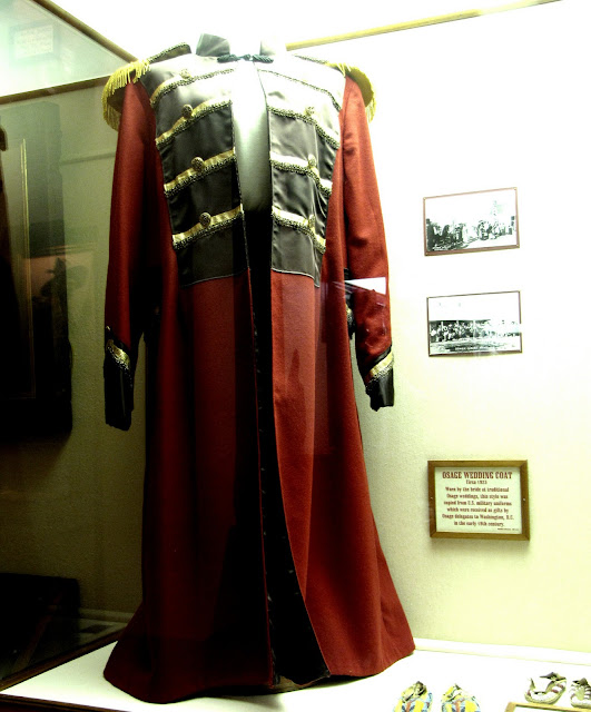Надо сказать, что средний индеец в те времена был крупнее среднего бледнолицего, а средний осейдж был крупнее среднего индейца. Художник Джордж Кэтлин утверждал, что редкий осейдж был меньше шести футов, многие достигали шести с половиной, а некоторые даже семи. И вот куда таким гигантам куртки, сшитые на среднестатистического европейца? А вот девушкам - в самую пору. И цвет-то какой - глаза радует, только по праздникам и носить.