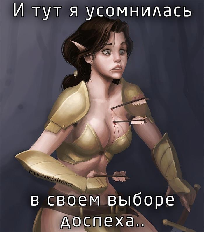 Бронелифчики, бронекупальники, бронекорсеты, бронебикини и прочие атрибуты женщин-воинов как-то прочно вписались в современный стиль фэнтези, что порой смотрятся уж очень глупо и смешно. Это касается не только книг, но и игр, комиксов, фильмов.