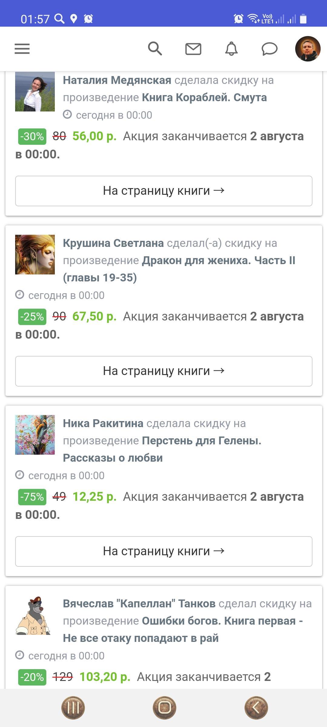 Скидки на книжки от «друзей», хотя Капеллан просто позорно бежал с этого поля, оставив меня его подписчиком. Я правда посчитал, а нахер мне это надо и взаимно отписался. Но суть не в этом. Суть в другом, есть тут хлопцы или красны девицы, которые покупают книги? Я, если честно, не купил ни одной, так как больше читаю бумажные издания, а тут, ну чисто для критики на конкурсах или в Клубе Злодеев. Но может я ошибаюсь, и среди этих продавцов радости есть новые Болдаччи, Кристи, Берроузы, Ивановы, Сафоны, Пелевины и Кинги?